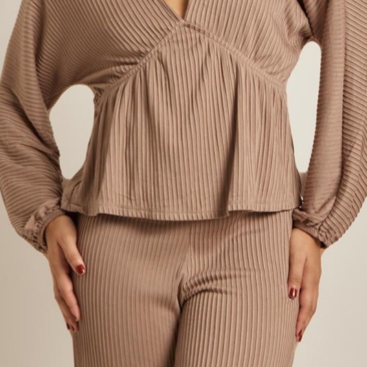 malha canelada e decote V a malha canelada 3d traz textura, conforto e aquela fluidez gostosa de usar no dia a dia. o decote v valoriza o colo de um jeito natural, deixando a peça perfeita para qualquer ocasião |