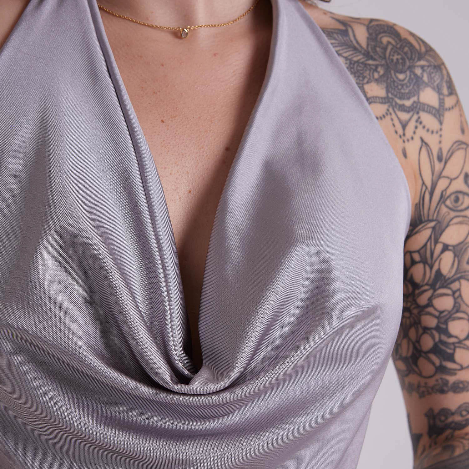 o decote degagê cria um drapeado natural lindo, valorizando o colo com elegância. por ser frente única, o desenho alonga e deixa o visual mais moderno. atrás, a tira fina regulável traz o ajuste perfeito, para você adaptar o caimento exatamente do seu jeito.