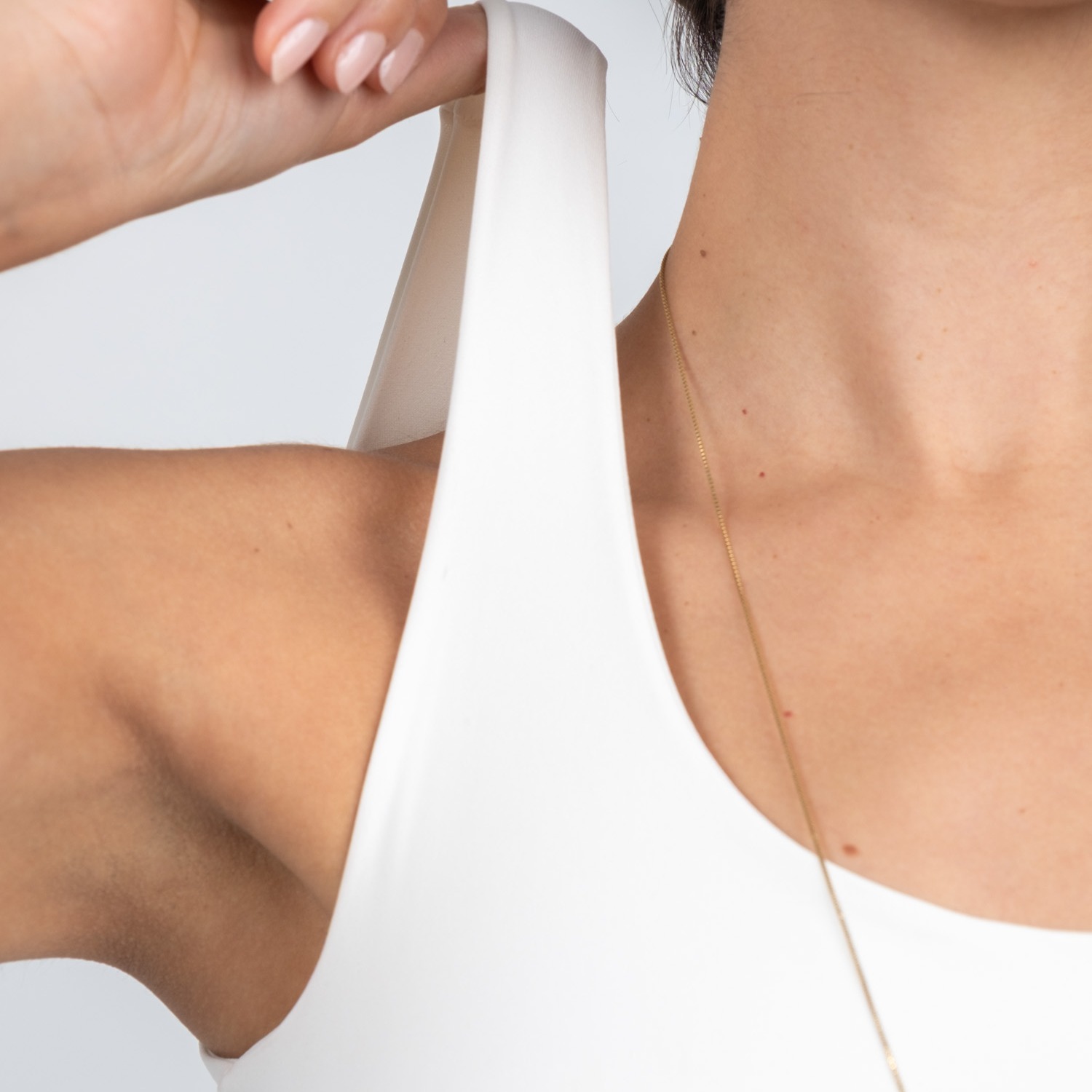 por ser feita em malha de poliamida, ela pede cuidados delicados para preservar a elasticidade e o toque suave. lave à mão ou no ciclo leve da máquina, sempre com água fria e sabão neutro. evite torcer, espremer ou deixar de molho. para secar, prefira à sombra, sem pendurar pelas alças para não deformar o tecido. e nada de secadora, tá? não é preciso, mas se quiser passar, use temperatura baixa e um paninho por cima.