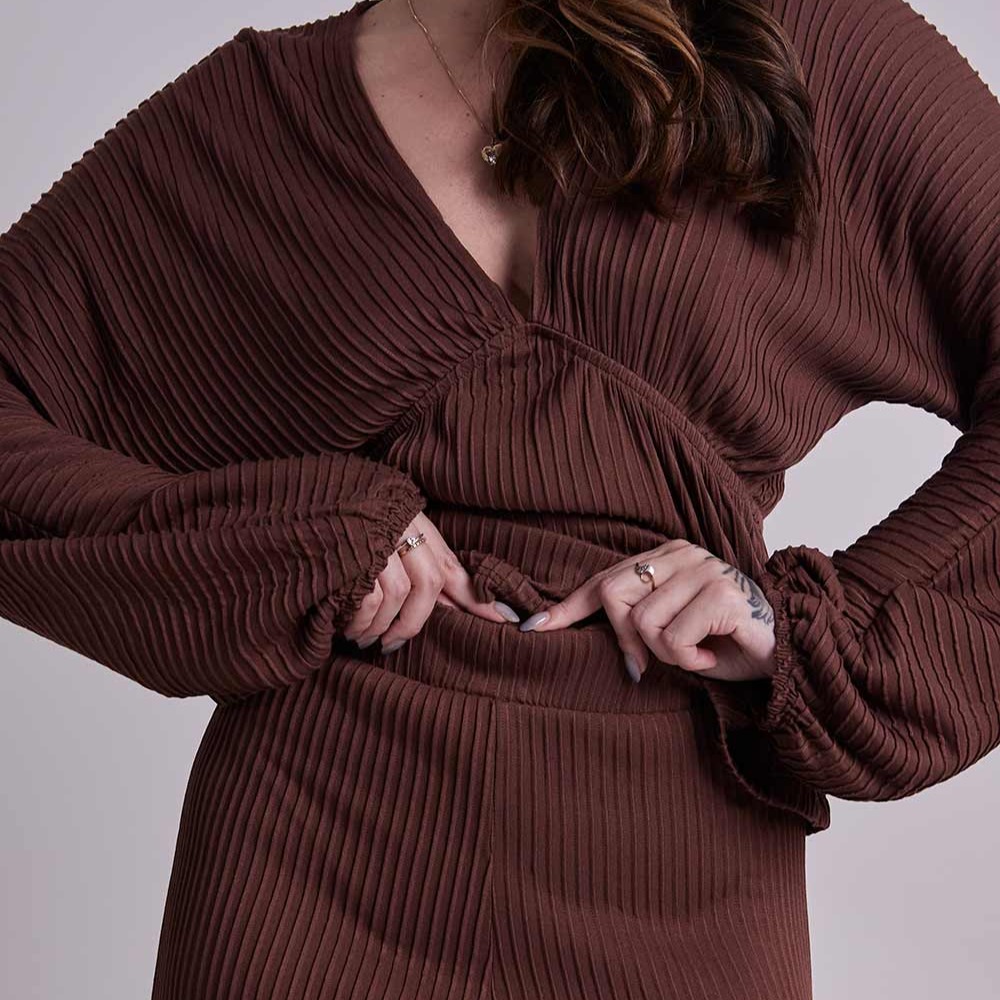 feita em malha canelada 3d de toque macio, ela tem aquela textura bonita que traz movimento e uma sensação leve no vestir. a modelagem reta cria um caimento elegante, fácil de combinar e perfeito pra quem gosta de um visual clean com informação de moda.