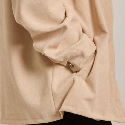 Tem caimento mais pesado e estruturado, e é confeccionada em veludo cotelê, que tem textura canelada e agrega muito estilo ao look! Pode ser usada aberta como terceira peça ou fechada.