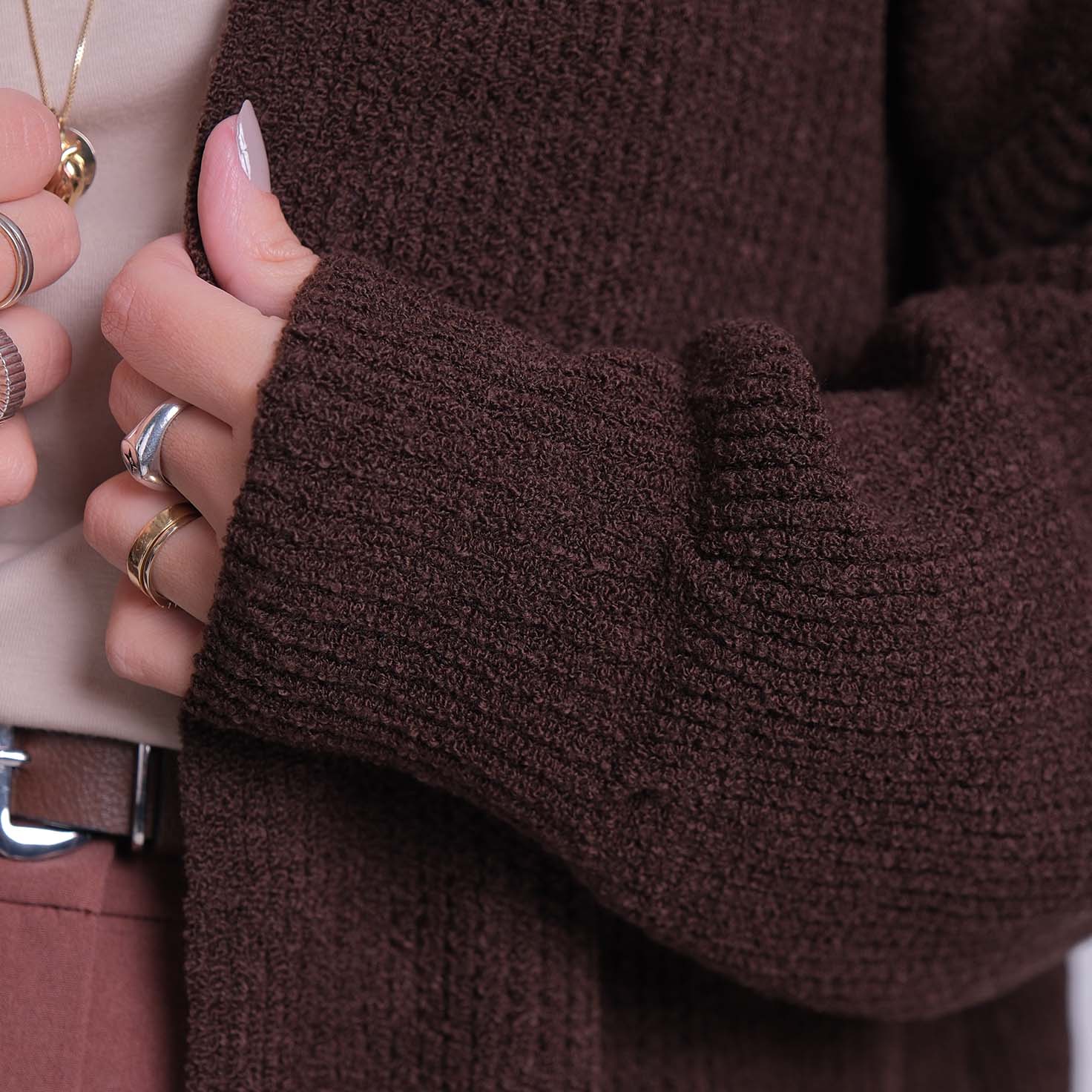 prático, estiloso e super gostoso de vestir. o analu é um cardigan longo feito em tricot mousse — com aquela textura leve, que aquece sem pinicar. tem comprimento alongado, caimento soltinho e visual minimalista. uma peça versátil, pra compor looks estilosos e descomplicados nos dias frios.