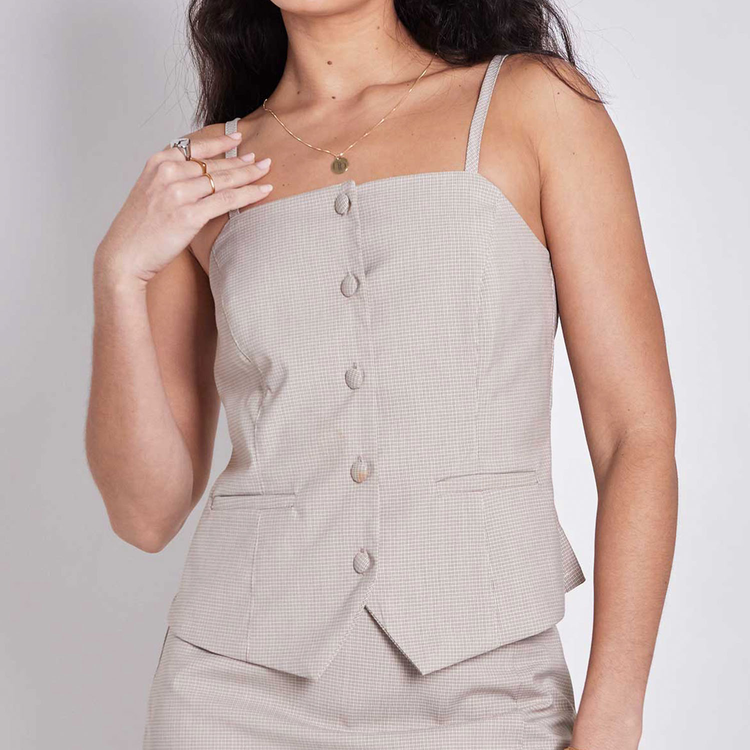 o combo colete cléo e saia jade entrega um visual alinhado, moderno e com muita