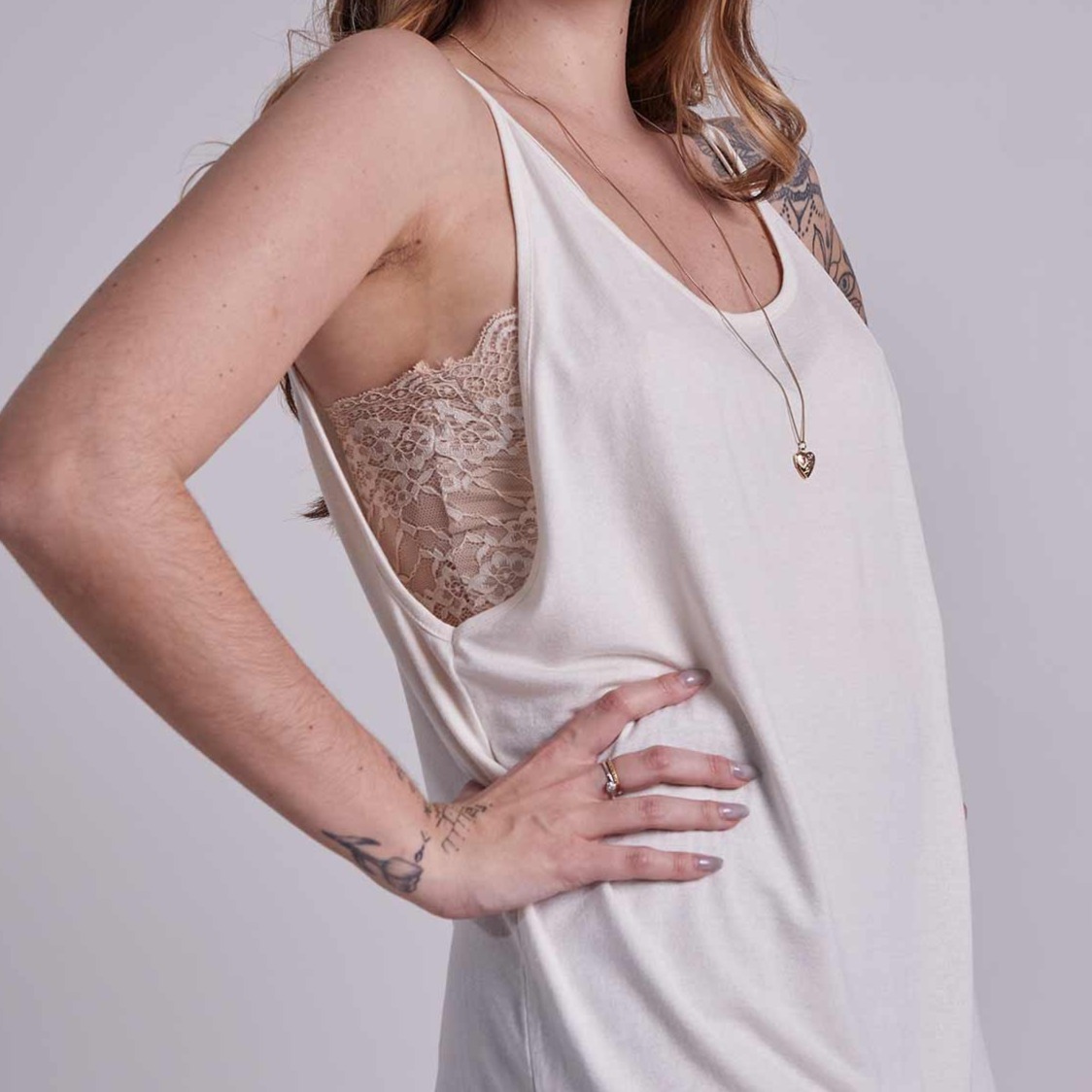 juntos, eles funcionam perfeitamente: o top aparece na medida certa sob a regata cavada, criando um visual feminino, moderno e descomplicado. mas também são peças super versáteis, que podem ser usadas separadamente — do look casual ao mais elaborado, do básico ao ousado.