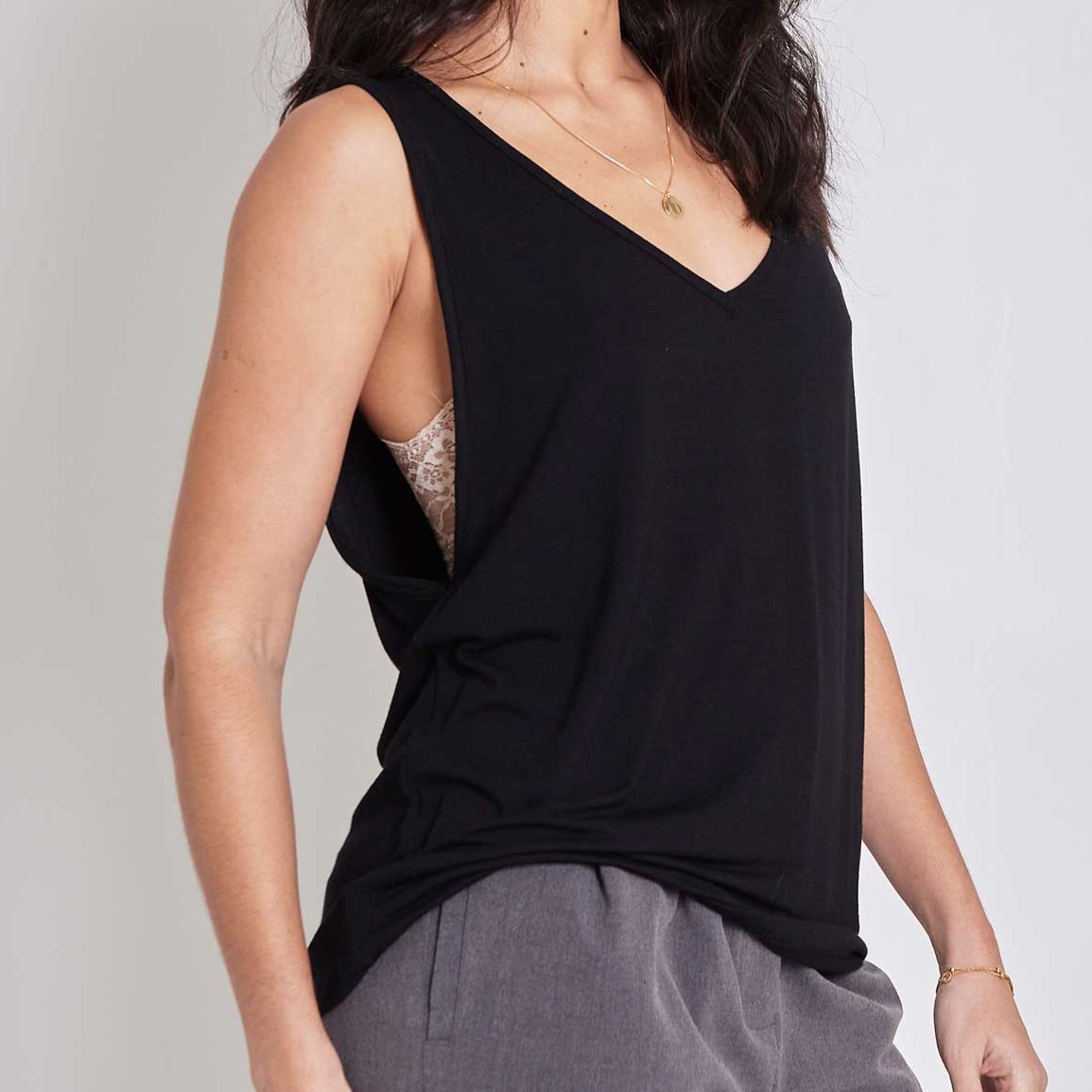 juntos, eles funcionam perfeitamente: o top aparece na medida certa sob a regata cavada eloise, criando um visual feminino, moderno e descomplicado. mas também são peças super versáteis, que podem ser usadas separadamente — do look casual ao mais elaborado, do básico ao ousado.