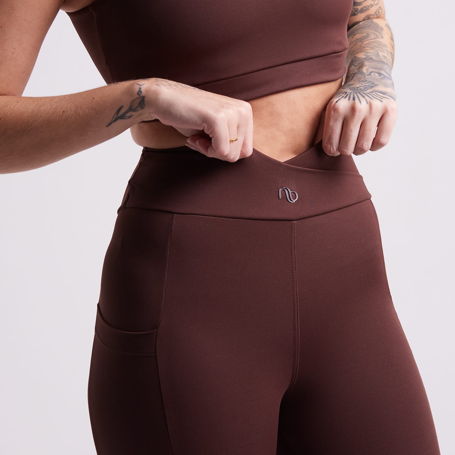 a estética da legging fitness com bolso é limpa, moderna e funcional — bem dna nina basics — pensada para quem quer se movimentar com conforto, tecnologia e aquele encaixe que dá segurança.