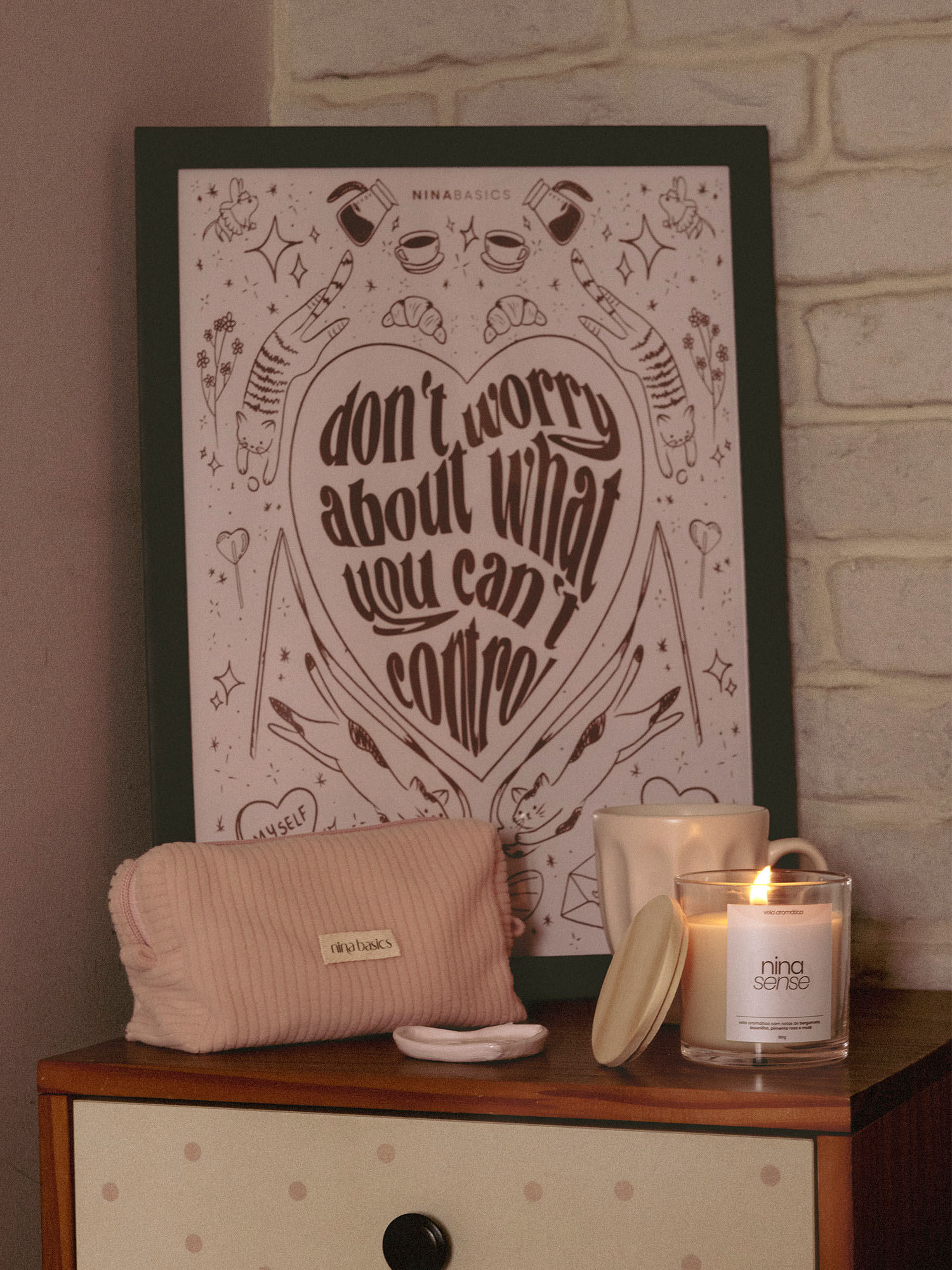com a mensagem “don’t worry about what you can’t control”, esse quadro é um convite pra desacelerar o pensamento, abrir espaço pro presente e lembrar que o que é leve também é bonito. é sobre respirar fundo, confiar no tempo das coisas e não se