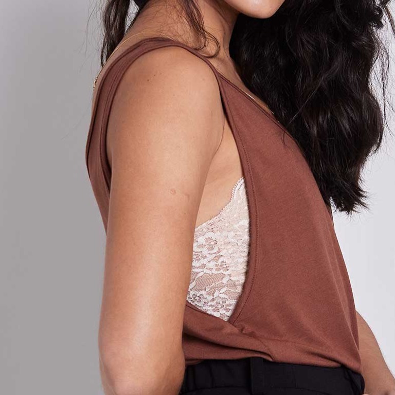 e tem mais: por ter decote nas costas e acabamento limpo, a eloise é perfeita pra usar sozinha, mas também casa perfeitamente como o nosso top renda triângulo!