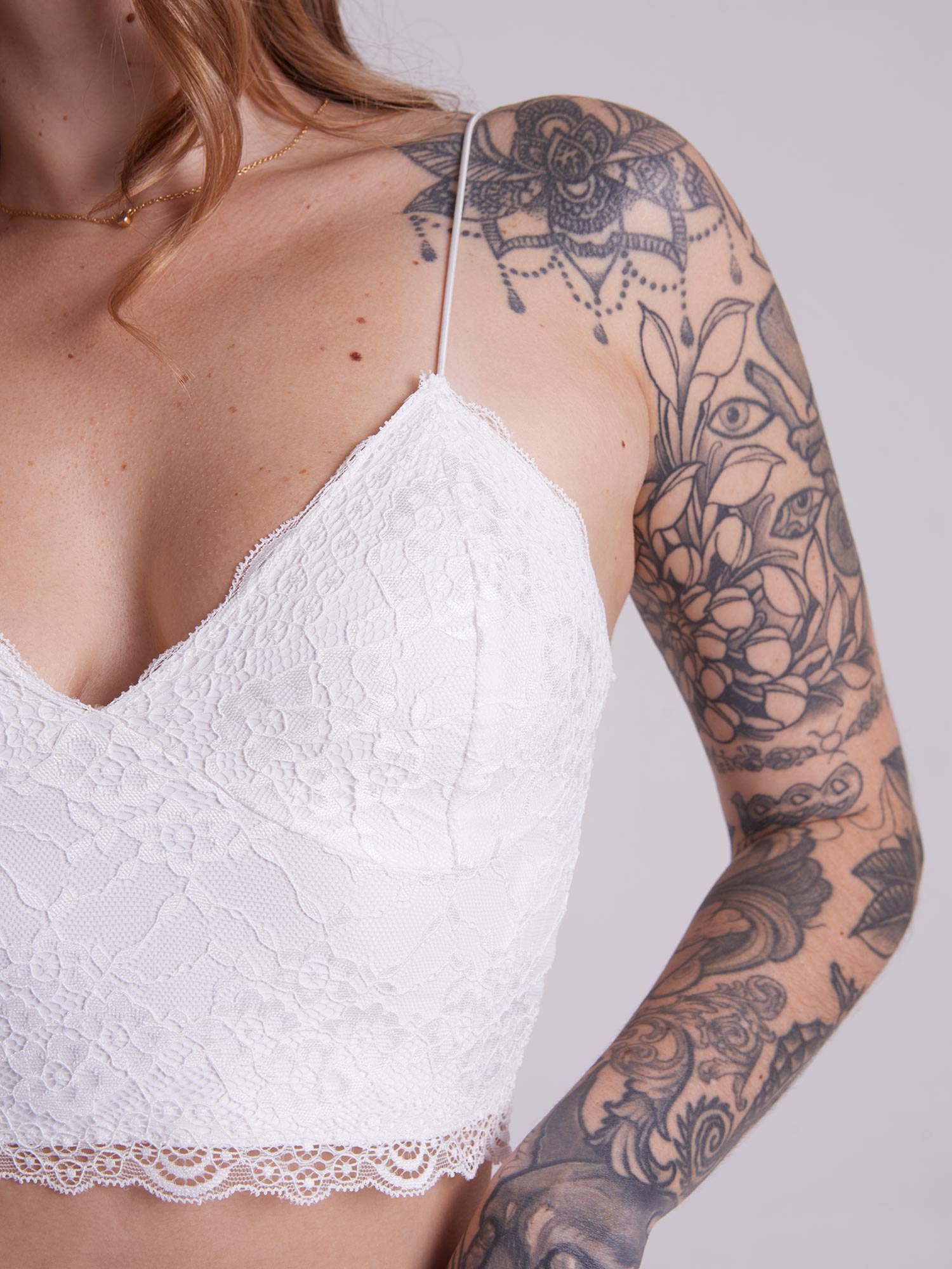 feito em renda chantilly delicada, forro em poliamida macia e estrutura pensada pra conforto real, o top renda triângulo é uma peça que veste com suavidade e deixa o corpo respirar.
