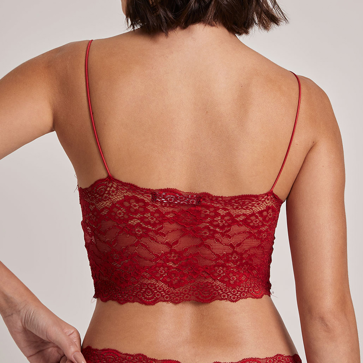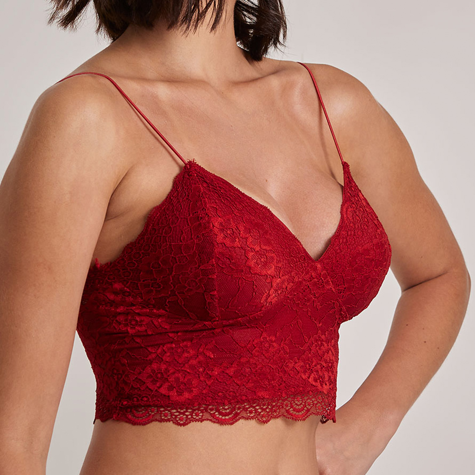 feito em renda chantilly delicada, forro em poliamida macia e estrutura pensada pra conforto real, o top renda triângulo é uma