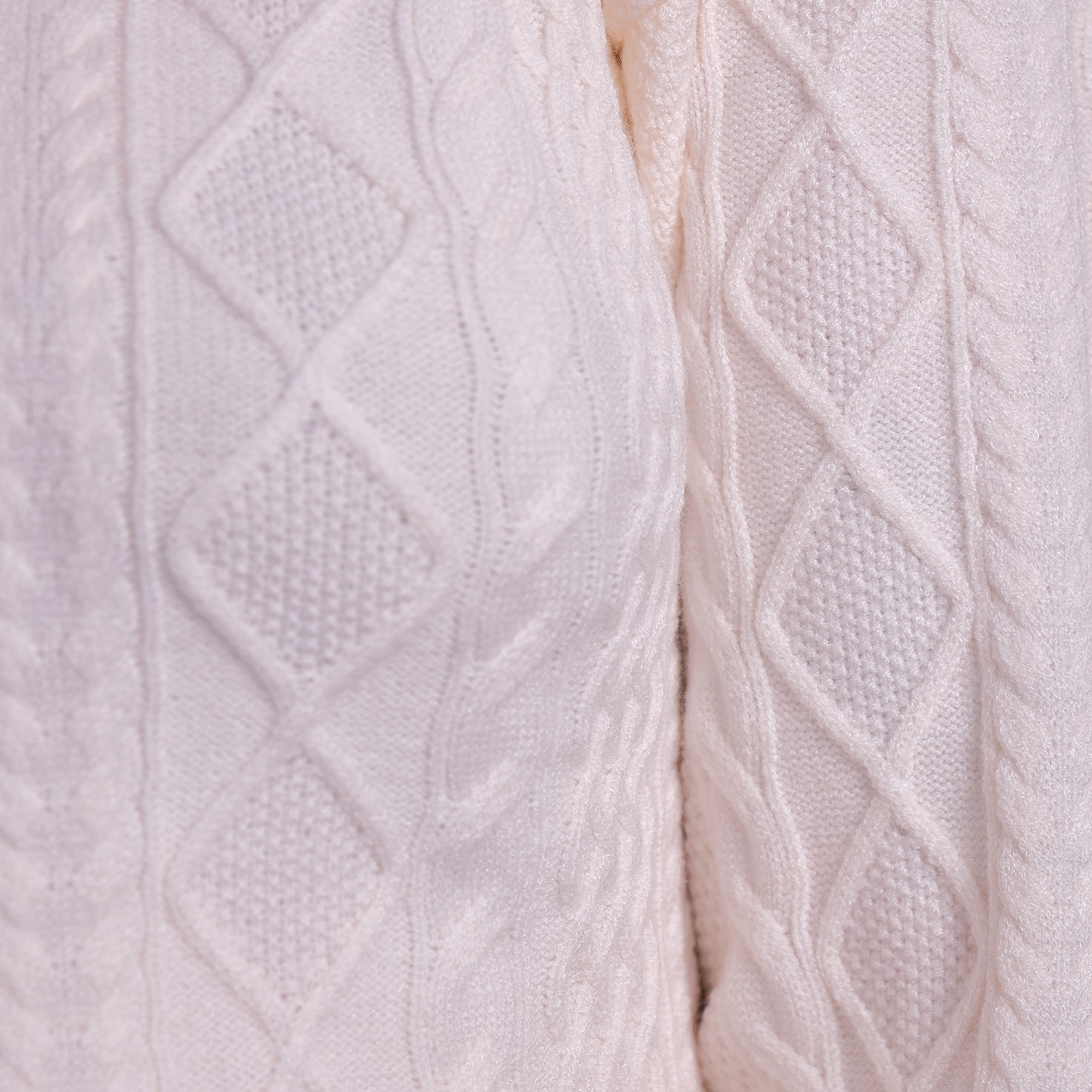 ![]() | textura trançada com acabamento premium a trama trabalhada mistura desenhos geométricos e trançados verticais, criando um visual rico e atemporal. o caimento é leve e estruturado na medida, com punhos e barra canelados que deixam tudo no lugar |