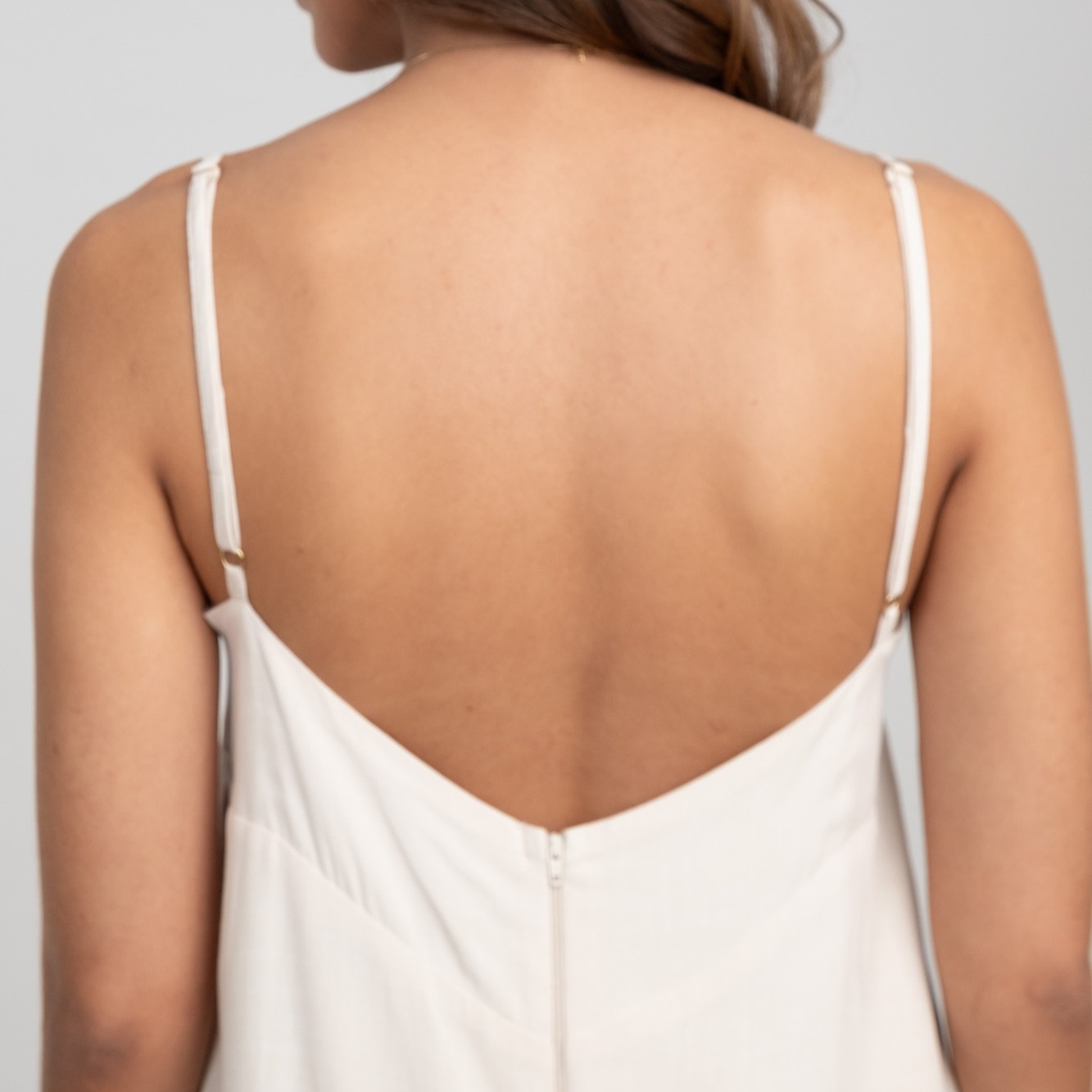 as alças finas com regulagem deixam o ajuste perfeito e valorizam o colo, enquanto as costas abertas trazem um toque de frescor e sensualidade sutil.