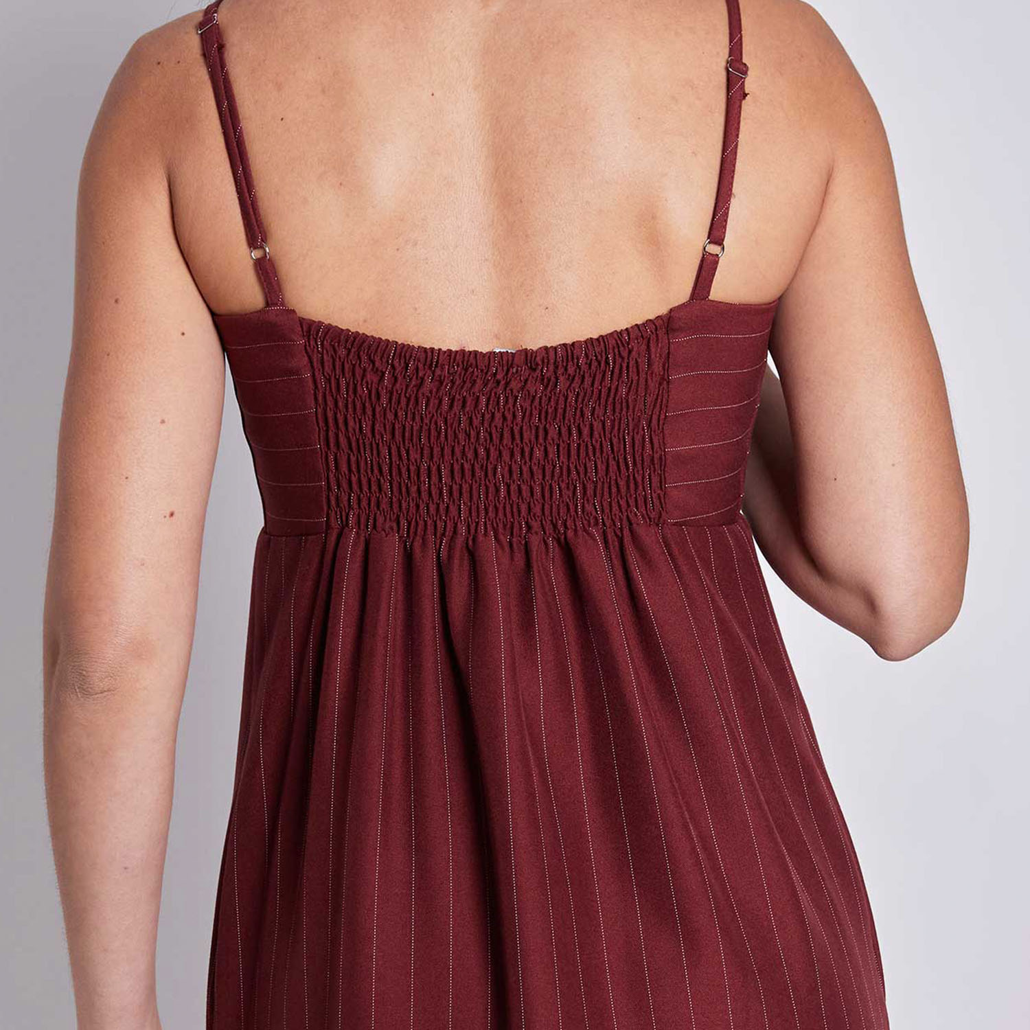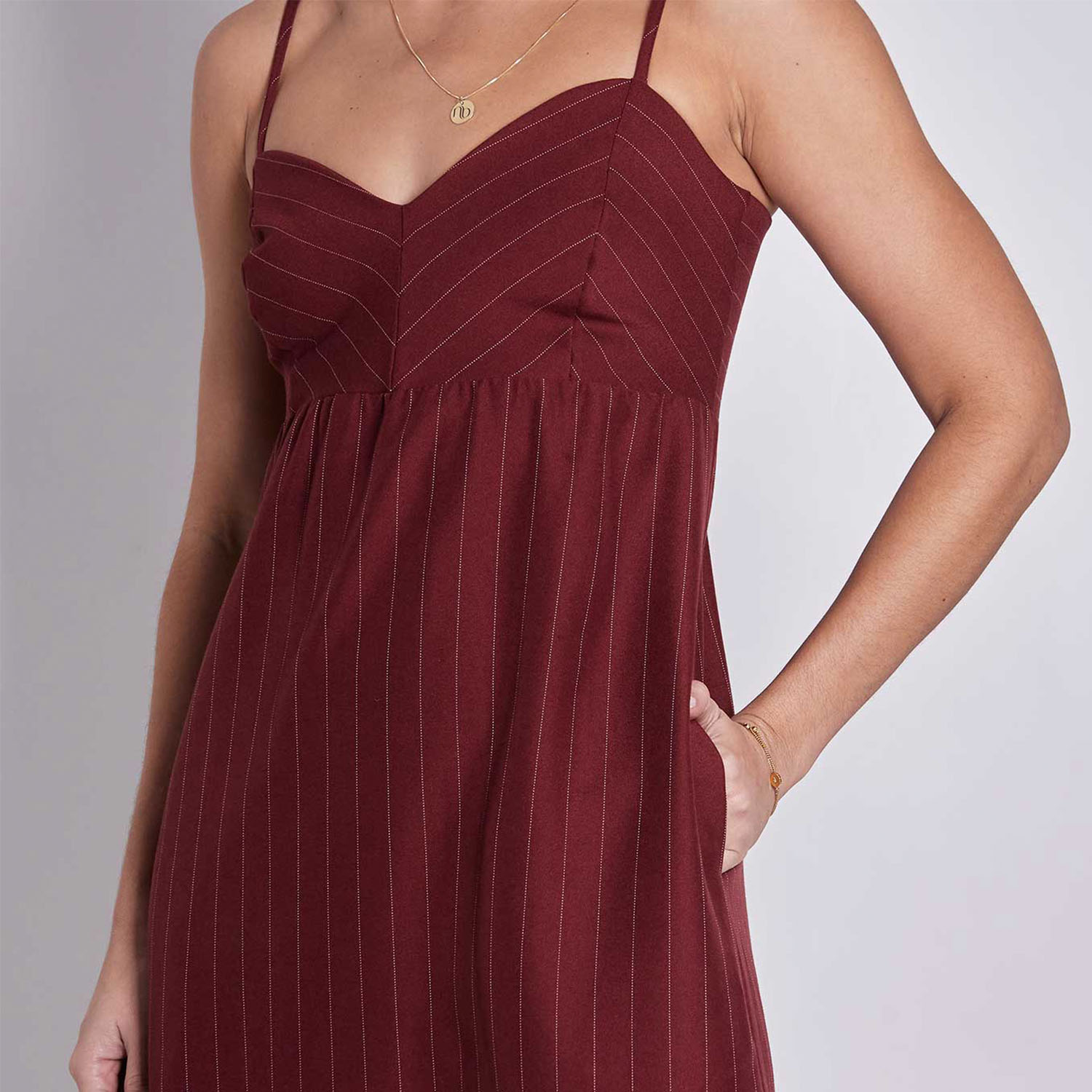 já o cherry listrado tem um pouco mais de fluidez e aquele visual clássico e cool das riscas de giz.
